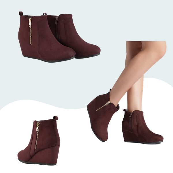 5. DREAM PAIRS Women's Suede Low Wedges Ankle Boots