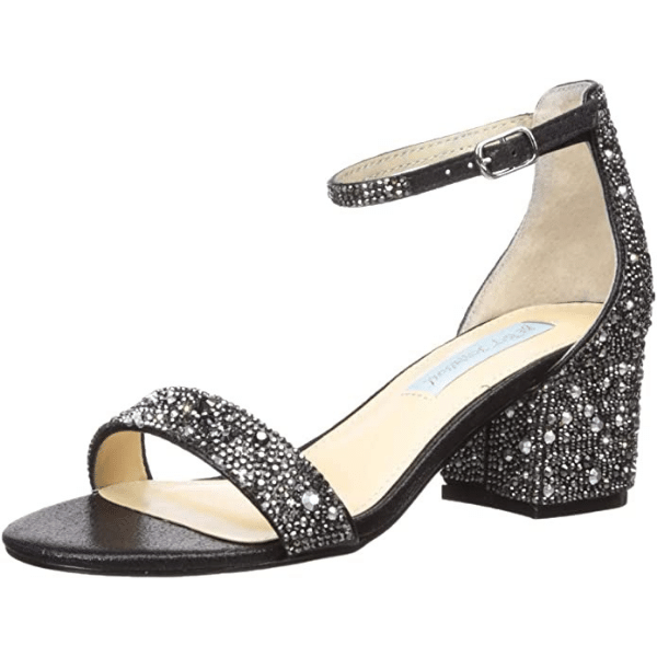 For the Cinderella finish we absolutely love these Betsey Johnson Blue SB-MARI rhinestone block heeled sandals and this satin fluffy clutch sure to make it a magical evening.