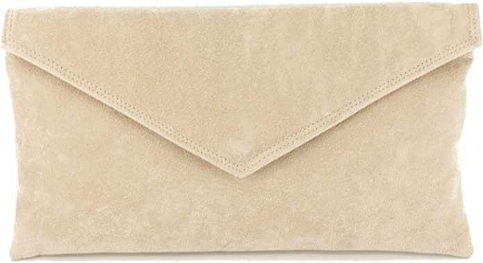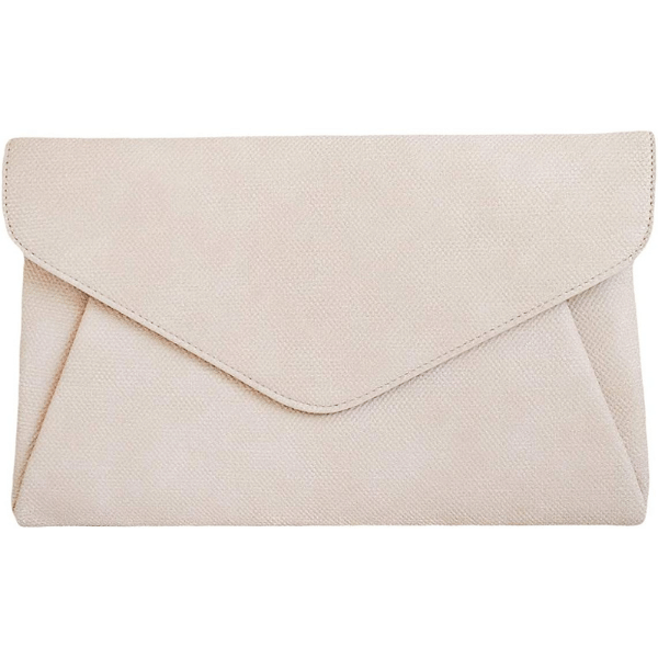 Neat evening occasion wedding clutch/shoulder bag in faux suede. Envelope design with a detachable strap. Closure by magnetic lock.