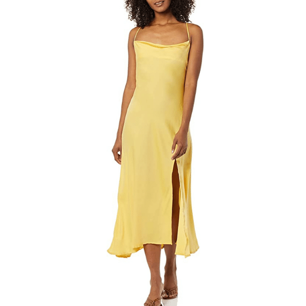 This women's label Gaia dress is a midi bodycon tank dress and is the perfect solution! Made from soft and comfortable blend fabric, has a flattering scoop neckline, and features a feminine side slit detail. Pair with a denim jacket for those cooler evenings. It's perfect for everyday wear from amazon fashion picks!