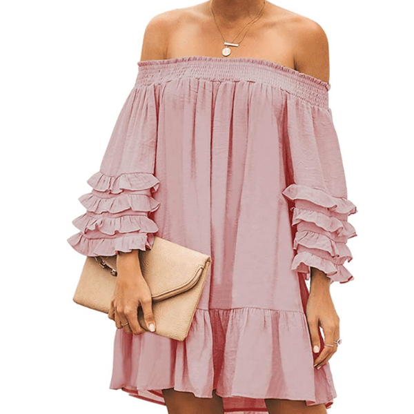 This Zanzia off-the-shoulder chiffon is a flattering dress that will fit perfectly and make you look thinner and prettier all summer long.