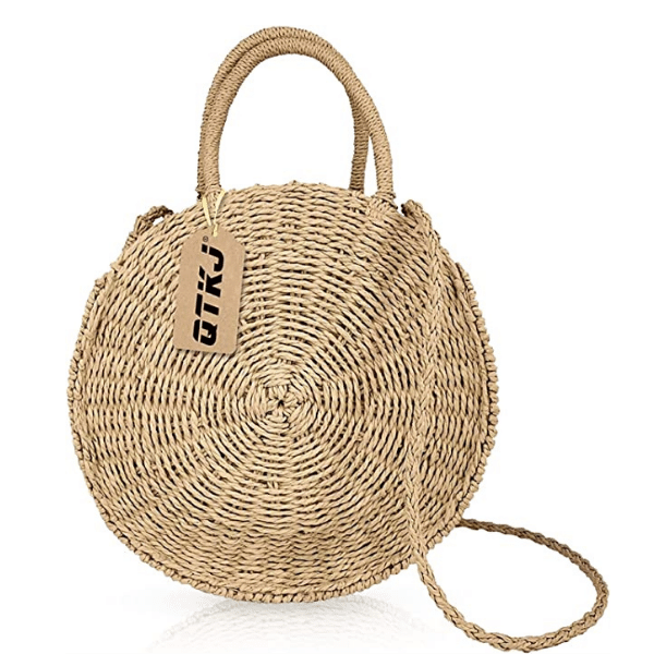 QTKJ llc site has a round rattan cross body bag shoulder or handled satchel completes this adorable outfit.