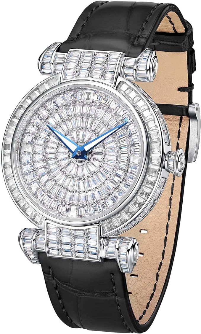 Diamond-Encrusted Timepiece: A masterpiece of horology, this artisan-crafted watch boasts an intricate blend of sophistication and opulence. The 18-karat gold casing is studded with an array of brilliant-cut diamonds, while the mother-of-pearl dial shimmers delicately in the light.