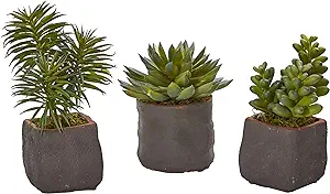 Succulent Plant Trio: Immerse your surroundings in the natural allure and elegance of these three charming succulent plants, each nestled in its own uniquely designed and decorative planter. This trio isn't merely a collection of greens; it's a statement of understated beauty and natural grace. In a product review, these succulents are more than just plants—they're living, breathing pieces of art that bring a touch of nature into any space.