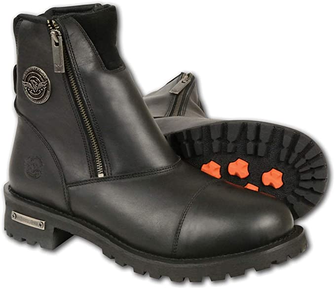 With their synthetic leather, these motorcycle cruiser boots will even stay protected from cold and heat. They also have a cushioned insole with heel support for comfort while riding.